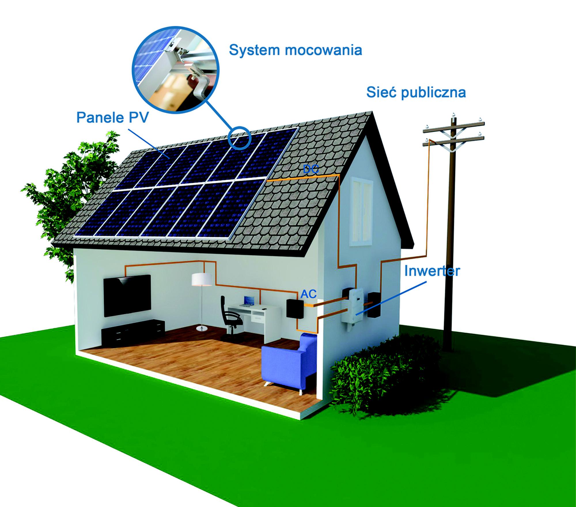 Połączenie elementów z zestawu fotowoltaicznego zapewni nam ciągłość przesyłania energii elektrycznej do publicznej sieci elektroenergetycznej.